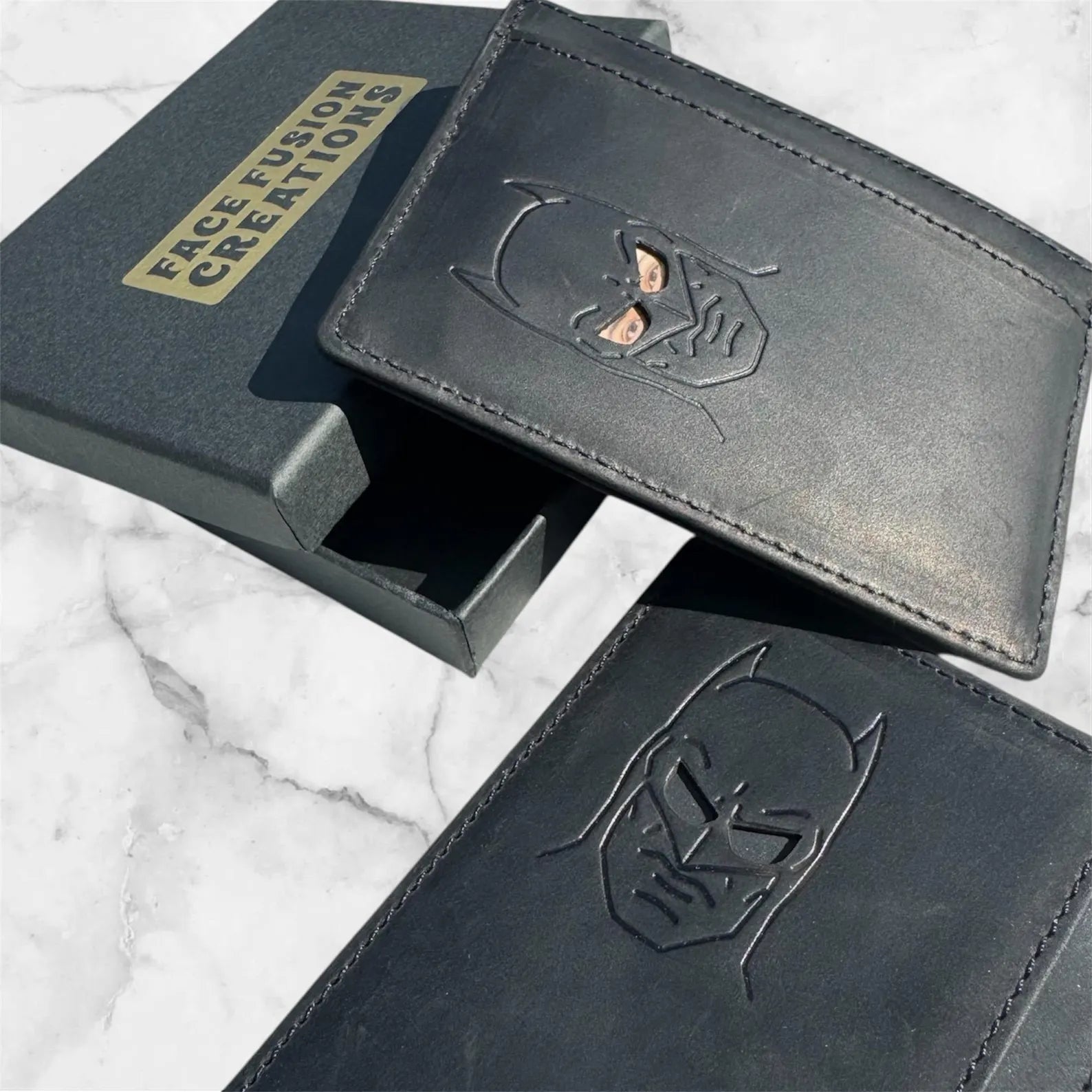 Carry a bit of mystery and fun wherever you go with the Bat Face Card Holder by Face Fusion Creations!