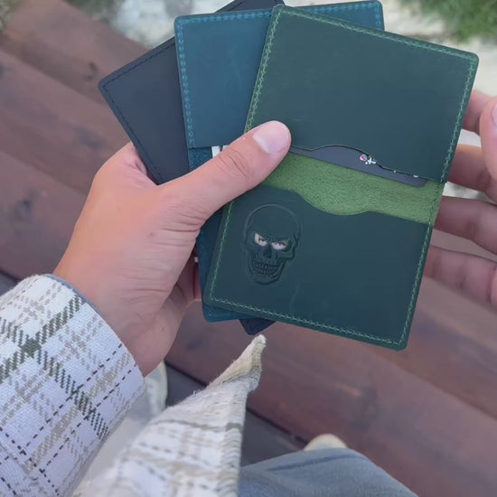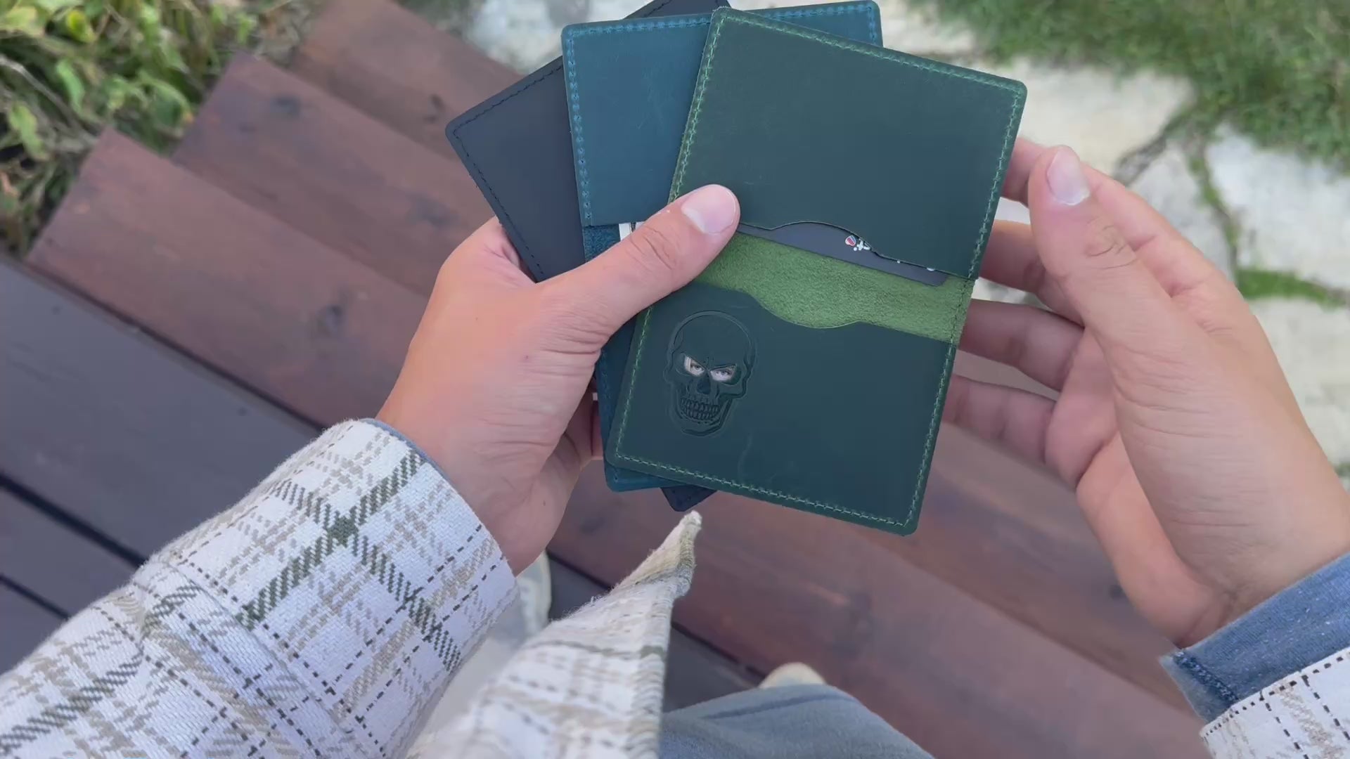 Featuring a bold Skull inspired face design, this wallet is more than just storage for your essentials. With precision-aligned eye holes, it pairs with most U.S. government-issued horizontal IDs. Simply slide in your ID, and watch as the Skull face comes alive your eyes align with it, creating a fun, unique, and unforgettable effect.
